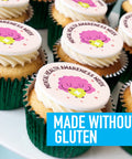 Delicious Mental Health Awareness week made without gluten cupcakes! The perfect excuse to get people chatting about mental health over a cuppa. Each vegan cupcake baked in a silver case, topped with a hand piped real buttercream swirl and cute Mental Health Awareness week design.