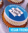 Celebrate your team with our premium vegan Employee Appreciation Day cupcakes, featuring a bold “You’re A Star” design. Created for inclusive workplace celebrations, these cupcakes ensure everyone can feel valued and recognised.